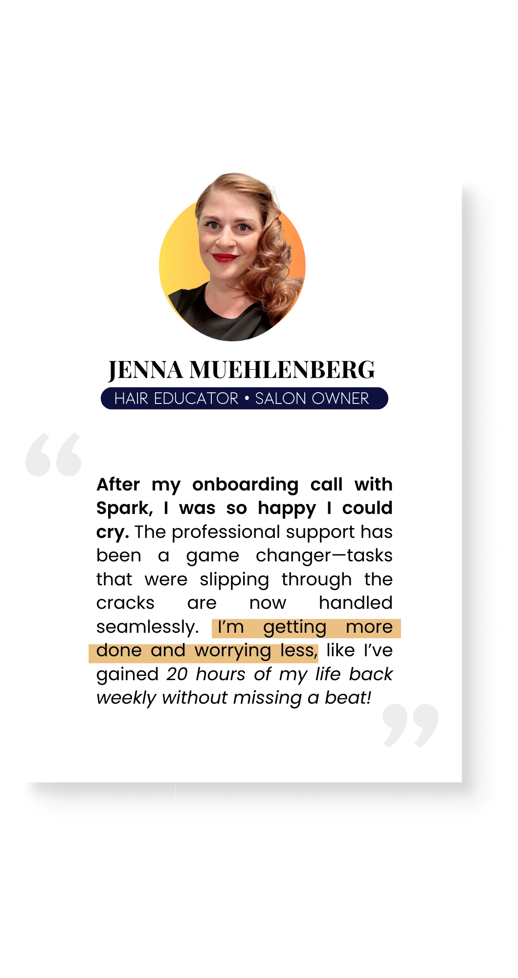 Hi, I’m Heather Torriente, founder of Spark Pro Global and a Goldwell National Artist. 👋 I know firsthand the challenges of running a salon, managing a team, and keeping your social media fresh—all while trying to carve out time for yourself.